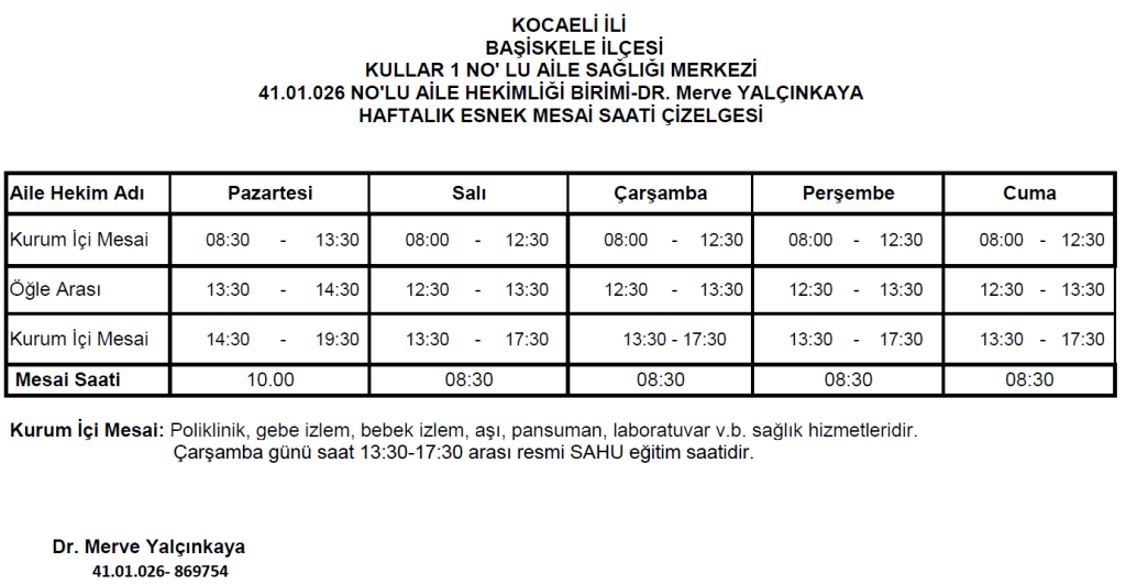 Çalışma Saatleri